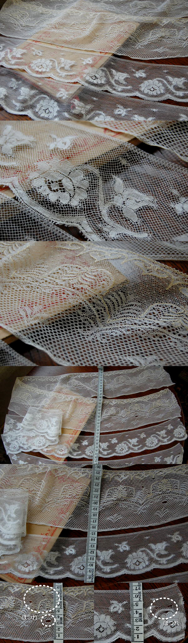 ハンドメイドに使ったり、リボンとして使ったり、フレームに入れて飾ったり・・・。いろいろ楽しめるアンティークコットンレースとアンティークリネンレースです♪ ※軽く、漂白・洗濯済みです。