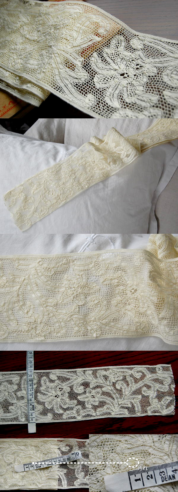 クリームイエローの落ち着いた雰囲気の、手作業で作られたハンドワークレース。飾って楽しんでいただいても、ハンドメイドにお役立ていただいても! ※軽く、漂白・洗濯済みです。