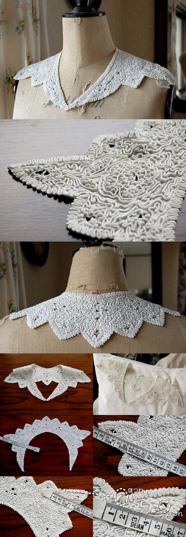 付け襟としてはもちろん、フレームに入れて飾っても素敵なアンティークレース襟です♪ ※軽く、漂白・洗濯済みです。