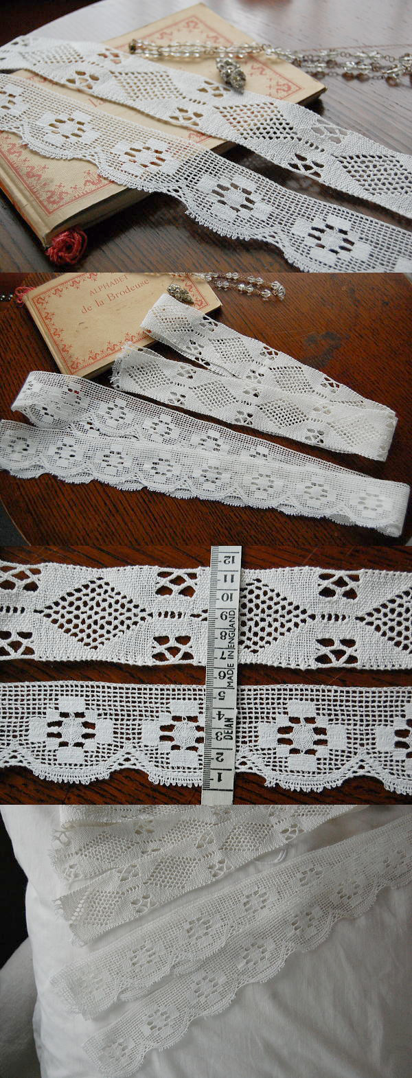 少し厚みがあり、しっかりとした感じの麻糸のレースのペアです♪ ※軽く、漂白・洗濯済みです。