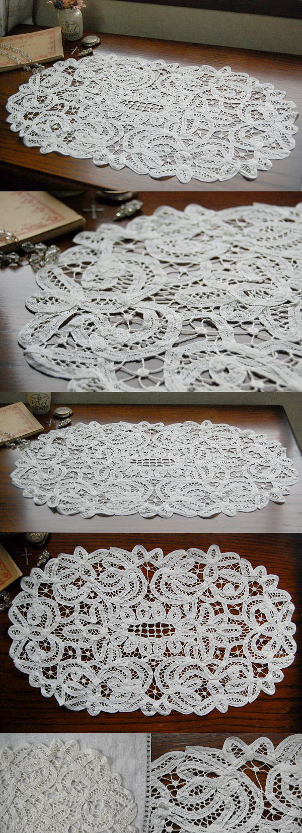細く素朴な風合いのコットンバテンレースマット。色はオフホワイト。 ※軽く、漂白・洗濯済みです。