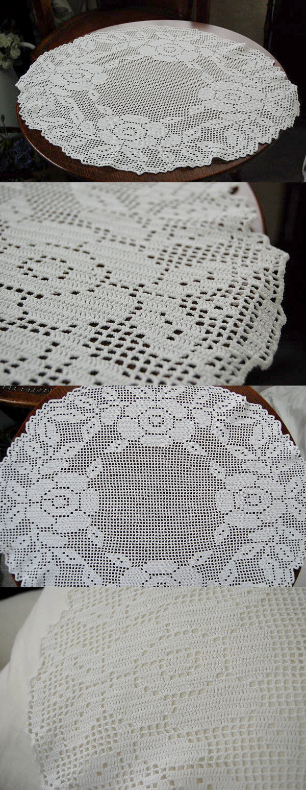 薔薇のデザインが素敵な楕円形のアンティークレースです♪ ※現地ディーラーにより洗濯済みです。