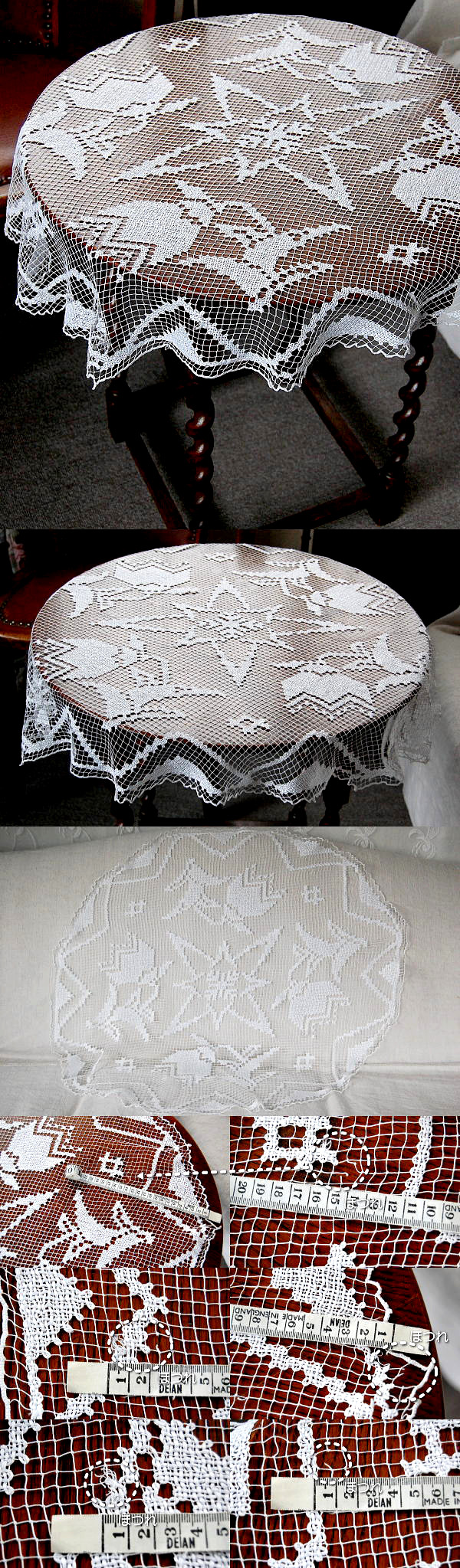 少し楕円っぽい形のヴィンテージレース。細い麻糸で、ざっくりと編まれています♪ ※軽く、漂白・洗濯済みです。