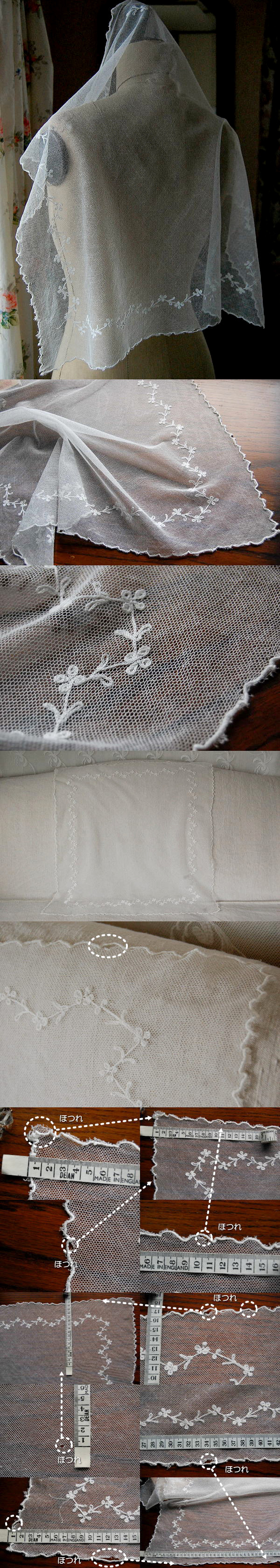 ベールとしてもお使いいただける、四角いコットンチュールレースです♪ 色はオフホワイト。 ※軽く、漂白・洗濯済みです。