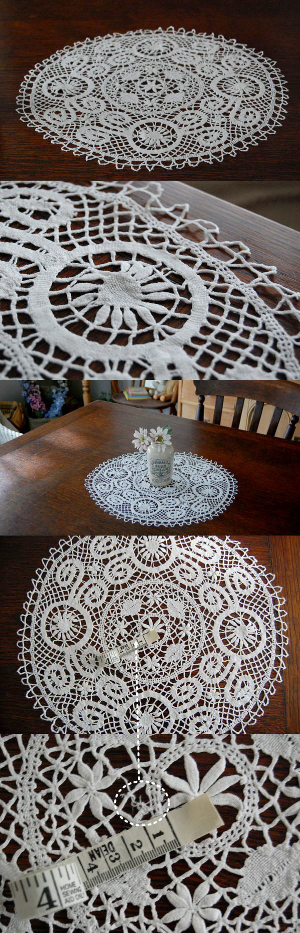 フレームに入れて飾っても、テーブルマットとしてお使いいただいても素敵な、繊細なコットンレースマットです♪ ※軽く、漂白・洗濯済みです。