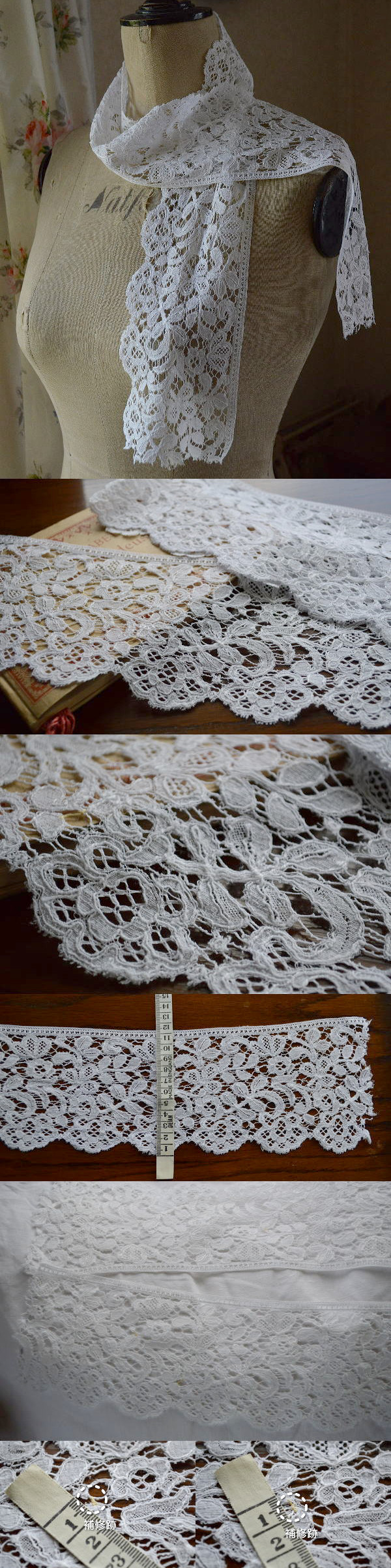フレームに入れて飾ったり、ハンドメイドにお役立ていただけるアンティークレースです♪ 写真のように、黄色の糸で補修したと思われる箇所がありますが、あまり目立たず、気にせずお使いいただけるかと思います。 ※軽く、漂白・洗濯済みです。