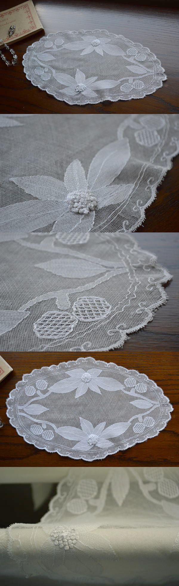 やわらかく繊細なコットンチュールレースマット。実用はもちろん、フレームに入れて飾っていただいても♪ ※軽く、漂白・洗濯済みです。