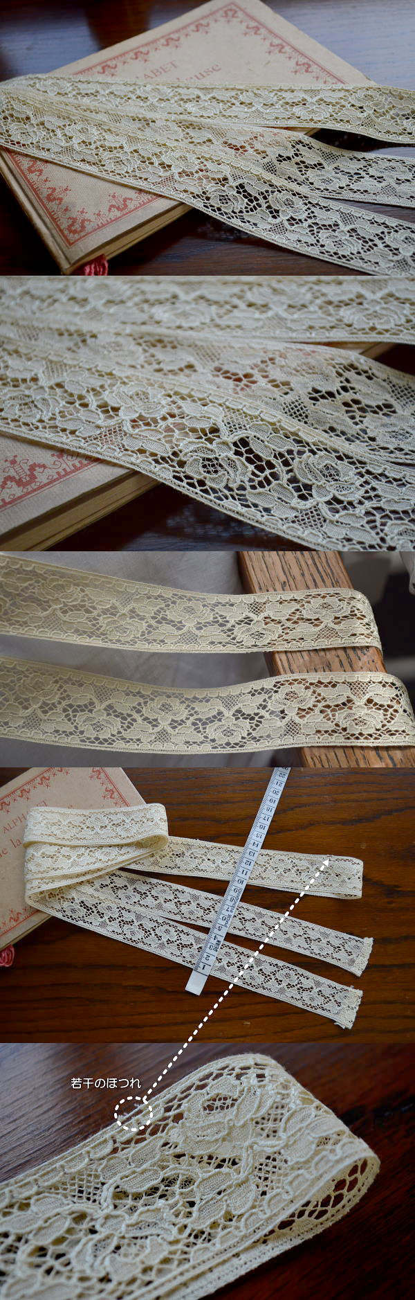 細かな薔薇のモチーフが素敵なコットンレース。フレームに入れて飾っていただいても、ハンドメイドにお役立ていただいても♪ ※軽く、漂白・洗濯済みです。