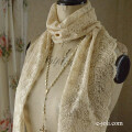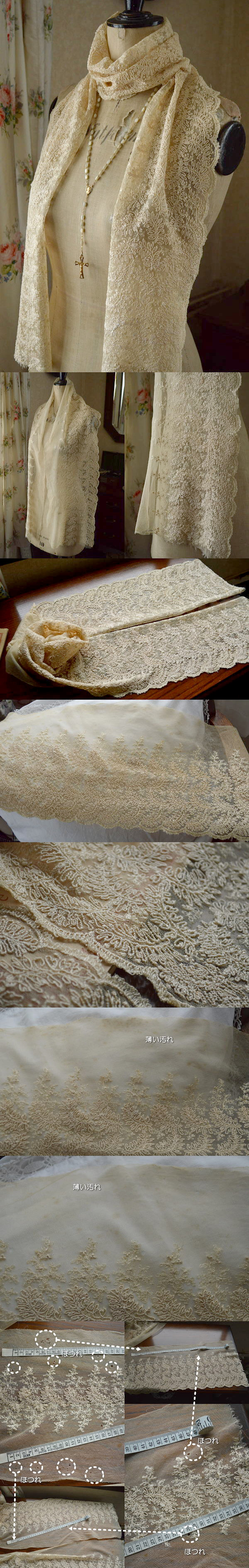 繊細なチュールレースに光沢あるデザインが素敵な幅広レース。ストールとしてお使いいただいても♪ 写真のような薄い汚れがありますが、雰囲気良いです。 ※軽く、カラー漂白・洗濯済みです。