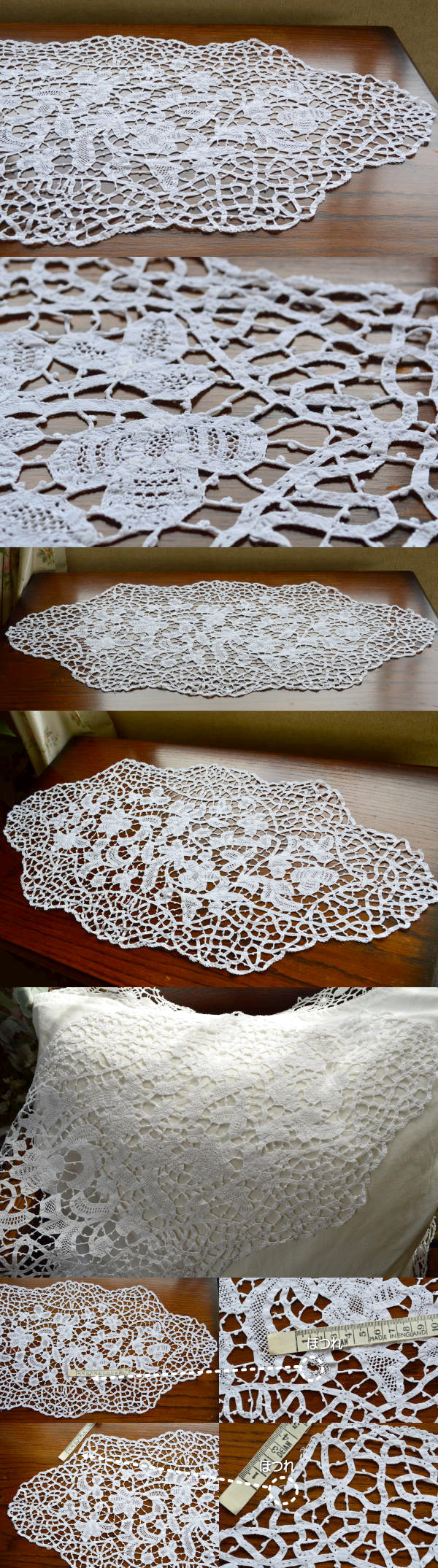 とても細かく丁寧に編み上げられたリネンレースクロス。ランナーとしてお使いいただいても、飾って楽しんで頂いても、ハンドメイドにお役立ていただいても♪ 写真のようなほつれがありますが、気にならない程度です。 ※軽く漂白、洗濯済みです。