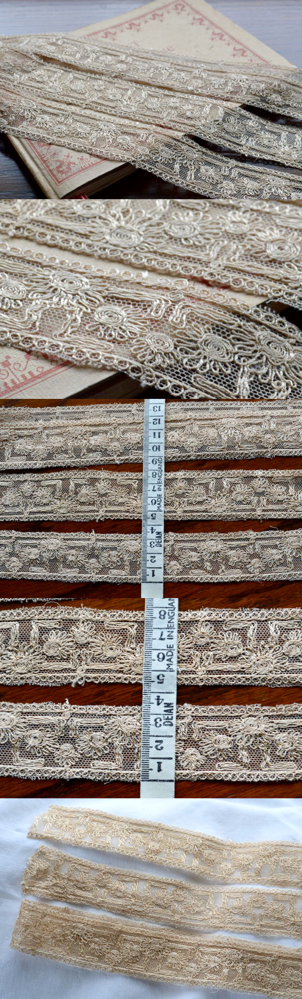 光沢のある、エレガントなイメージのフランスアンティークコットンレース。フレームに入れて飾って楽しんで頂いても、ハンドメイドにお役立ていただいても♪ 色はベージュです。 ※洗濯済みです。
