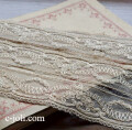 光沢のある、エレガントなイメージのフランスアンティークコットンレース。フレームに入れて飾って楽しんで頂いても、ハンドメイドにお役立ていただいても♪ 色はベージュです。 ※洗濯済みです。