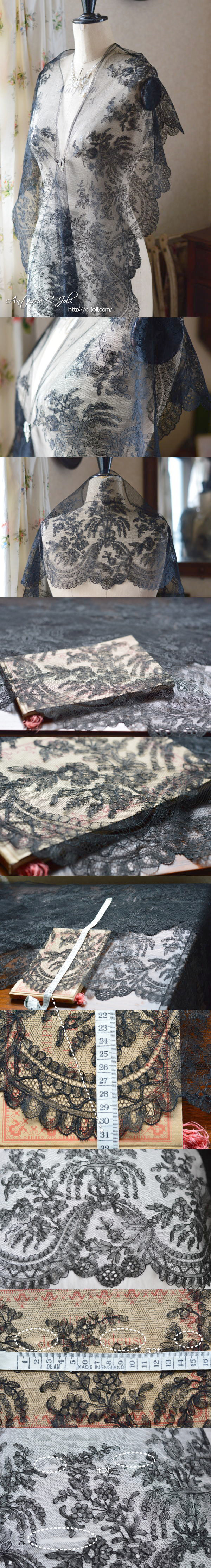 張りのあるリネンのアンティークブラックレース。ストールとしてお使いいただいても、フレームに入れて飾っていただいても、ハンドメイドにお役立ていただいても♪ 写真のようにほつれがありますが、黒い糸で補修していただくと目立たず、あまり気にせずお使いいただけるかと思います。 ※手洗い(冷水)済みです。