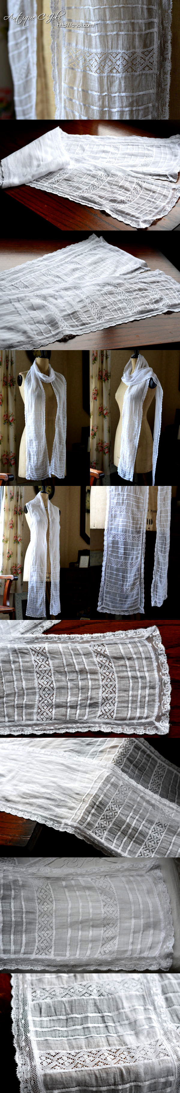 リボンとしてお使いいただいても、ストールとしてお使いいただいても素敵なロングクロスです♪ コットンガーゼのやわらかな素材に、やわらかなレースが可愛いです! ※洗濯済みです。