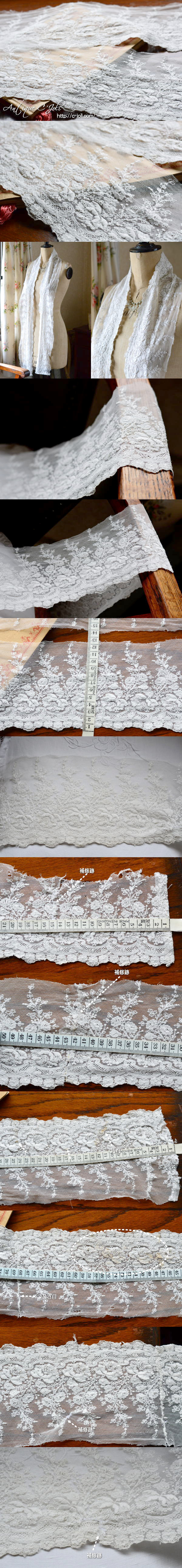 とてもやわらかく繊細な、フランスアンティークレース。フレームに入れて飾っていただいても、首元を飾っていただいても、ハンドメイドにお役立ていただいても♪ 写真のような汚れや、補修跡が見られますが、まだまだお使いいただけるとても繊細なリネンレースです。