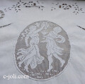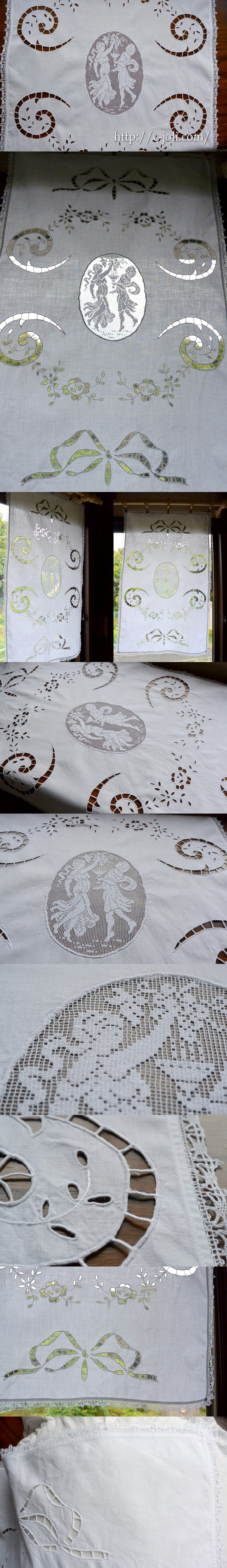 薄い綿生地に、細かなカットワーク手刺繍とフィレ風レースとエッジの細かなレースが素敵な、フランスアンティーククロスです♪ フレームに入れて楽しんで頂いても、ミニカーテンやカバーリングにお使いいただいても。 ※軽く漂白、洗濯済みです。