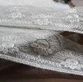 とてもやわらかく繊細なチュールレースに光沢のある刺繍がとても素敵な、フランスアンティークレース。フレームに入れて飾って楽しんで頂いても、ハンドメイドにお役立ていただいても♪ 色はホワイトです。 ※洗濯済みです。