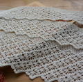 細かく丁寧に仕上げられた、リネンクロシェレースボーダー。写真のようなほつれがありますが、端の方ですので、ご使用に支障なさそうです。 ※軽く漂白、洗濯済みです。