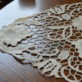 しっかりと編み込まれたリネン糸のニードルポイントレースクロス。色は生成りです。 ※洗濯済みです。