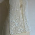 細かく繊細なコットンチュールレースに、光沢ある刺繍がとても素敵な、アンティークレースストールです♪ 色は生成り。 ※手洗い済みです。