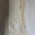 細かく繊細なコットンチュールレースに、光沢ある刺繍がとても素敵な、アンティークレースストールです♪ 色は生成り。 ※手洗い済みです。