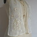 細かく繊細なコットンチュールレースに、ボビンレースがとても素敵な、アンティークレースストールです♪ 色は濃い目の生成り。 ※手洗い済みです。