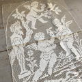 張りのある麻糸で細かく丁寧に編み込まれたエンジェル柄のハンドワークフィレレースクロス。フレームに入れて飾っていただいても、ハンドメイドにお役立て頂いても。写真のような汚れがありますが気にならない程度で雰囲気良いです。 ※洗濯済みです。