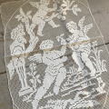張りのある麻糸で細かく丁寧に編み込まれたエンジェル柄のハンドワークフィレレースクロス。フレームに入れて飾っていただいても、ハンドメイドにお役立て頂いても。写真のような汚れがありますが気にならない程度で雰囲気良いです。 ※洗濯済みです。