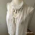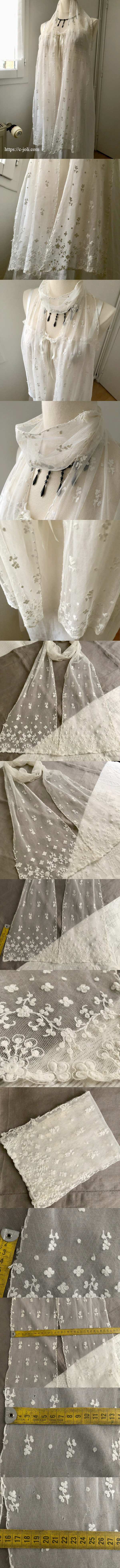 やわらかなコットンチュールが素敵な、長さ1.8mのストール。写真のような若干のほつれがありますが、雰囲気を損なわない程度です。 ※洗濯済みです。