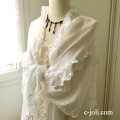 やわらかな綿ローン地に施されたとても丁寧なホワイトワーク刺繍が見事なアンティークショール。フリルがついて豪華な雰囲気。写真のような小さなほつれがありますが、雰囲気を損なわない程度です。 ※洗濯済みです。