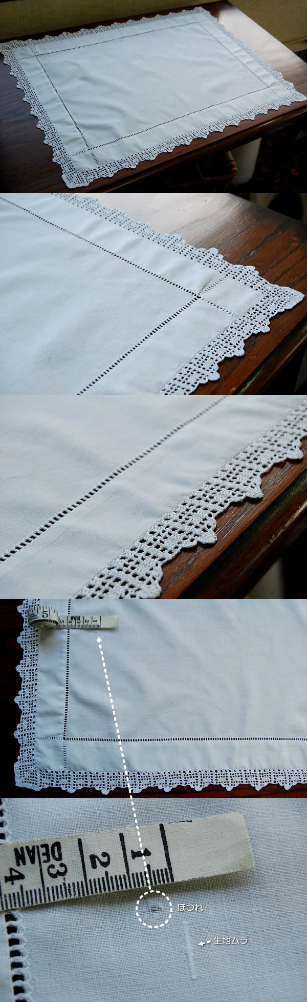 テーブルのセンターで使ったり、チェストの上で使ったり。。。いろいろな場所で使えるアンティークテーブルマット(テーブルトップクロス)です♪ コットンクロッシェレース、綿生地 ※軽く、漂白・洗濯済みです。