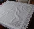 エレガントな雰囲気を演出してくれるアンティークのテーブルクロスです♪ くったりとした麻生地、コットンクロッシェレース ※軽く、漂白・洗濯済みです。