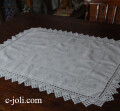 テーブルのセンターで使ったり、チェストの上で使ったり。。。いろいろな場所で使えるアンティークテーブルマット(テーブルトップクロス)です♪ 麻生地、コットンクロッシェレース ※軽く、漂白・洗濯済みです。