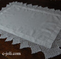 テーブルのセンターで使ったり、チェストの上で使ったり。。。いろいろな場所で使えるアンティークテーブルマット(テーブルトップクロス)です♪ 麻生地、コットンクロッシェレース ※軽く、漂白・洗濯済みです。