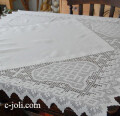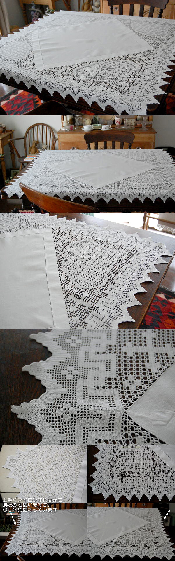 細かく、たっぷりとしたコットンクロッシェレースに張りのある麻生地が素敵なテーブルクロスです♪ ※軽く、漂白・洗濯済みです。