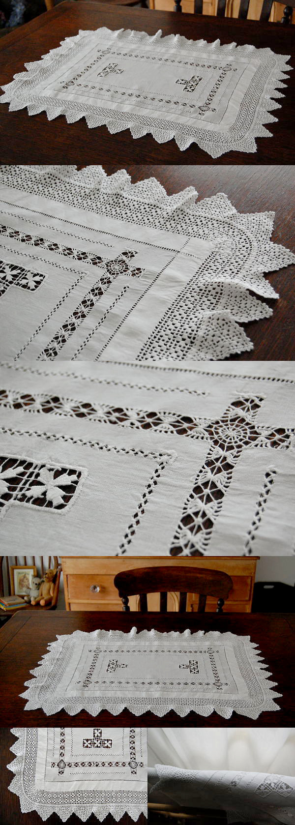テーブルのセンターで使ったり、チェストの上で使ったり。。。いろいろな場所で使えるアンティークテーブルマット(テーブルトップクロス)。オークテーブルにも、パインテーブルにも合います♪ ※軽く、漂白・洗濯済みです。