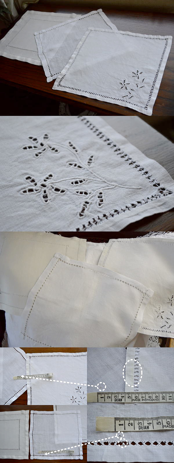 ハンカチやテーブルマットとしてお使いいただける四角いアンティークリネンクロスのセットです♪ ※軽く、漂白・洗濯済みです。