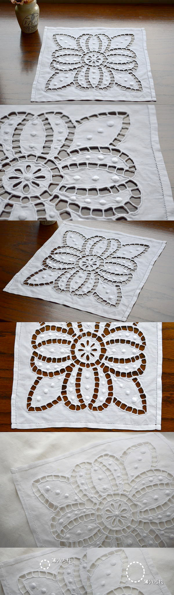 エレガントな雰囲気を演出してくれるアンティークテーブルマット。テーブルにも、チェストにも♪ ※軽く、漂白・洗濯済みです。
