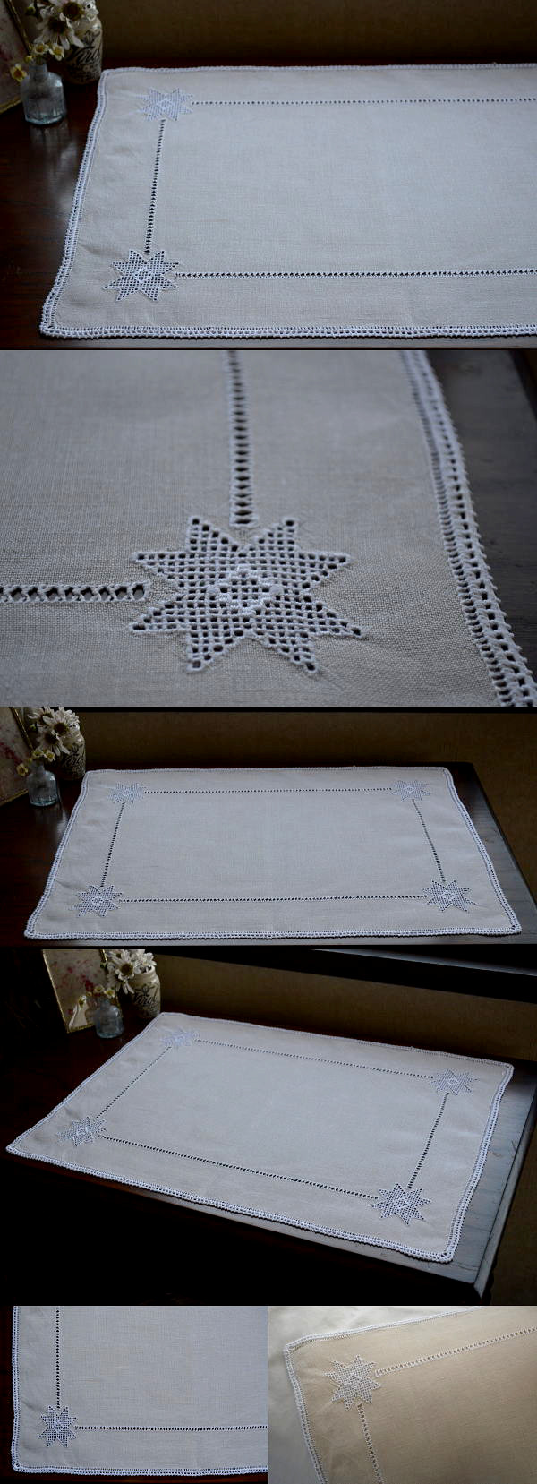 生成りのベースに白の手刺繍が素敵なアンティークリネンクロスです♪ ※現地ディーラーにより洗濯済みです。