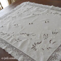 とても繊細な麻ローン生地に、とても丁寧なカットワーク手刺繍とエッジのレースが素敵なテーブルセンターです♪ ※軽く漂白、洗濯済みです。