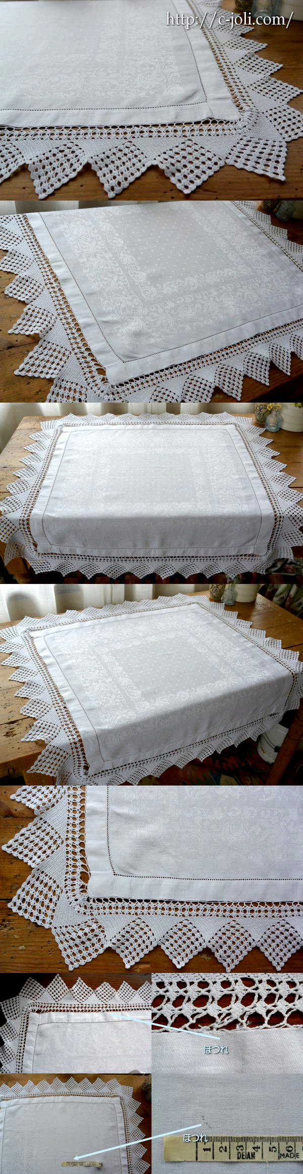 エレガントな雰囲気を演出してくれるイングリッシュアンティークテーブルマット。テーブルにも、チェストにも♪ 写真のように、小さなほつれがありますが、気にならない程度です。 ※軽く、漂白・洗濯済みです。