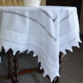 エレガントな雰囲気を演出してくれるイングリッシュアンティークテーブルクロス。四角いテーブルにも、丸いテーブルにも♪ 写真のような薄いシミがありますが、雰囲気を損なわない程度です。 ※軽く漂白、洗濯済みです。