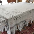 時を経た風合いがとても素敵な麻生地に、丁寧なカットワーク手刺繍とエッジのハンドワークフィレレースがとても素敵な、アンティークテーブルクロスです♪ エッジのフリンジに写真のようなほつれがありますが、雰囲気を損なわない程度です。 ※洗濯済みです。