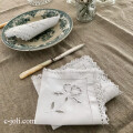 テーブルを華やかに演出してくれるアンティークテーブルナプキンのセット。実用いただいても、ハンドメイドにお役立ていただいても。張りのある麻生地に、丁寧なカットワーク手刺繍やエッジのボビンレースが素敵です。 ※洗濯済みです。