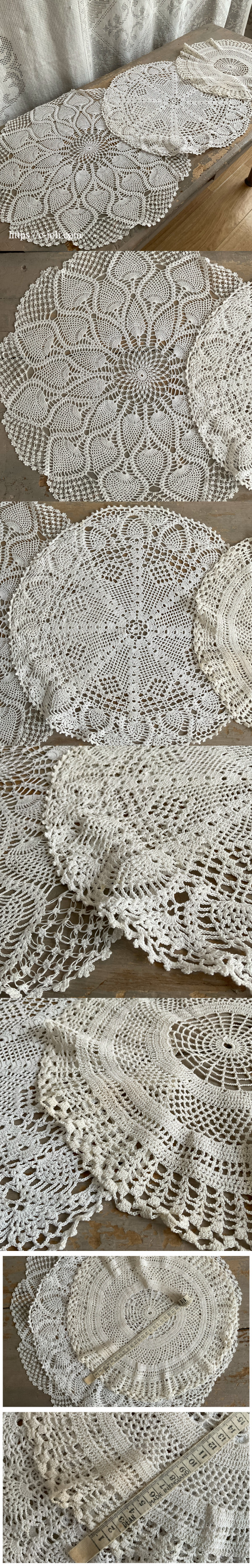 コットン糸やリネン糸で編まれた、繊細なクロッシェレースのみのアンティークドイリー。