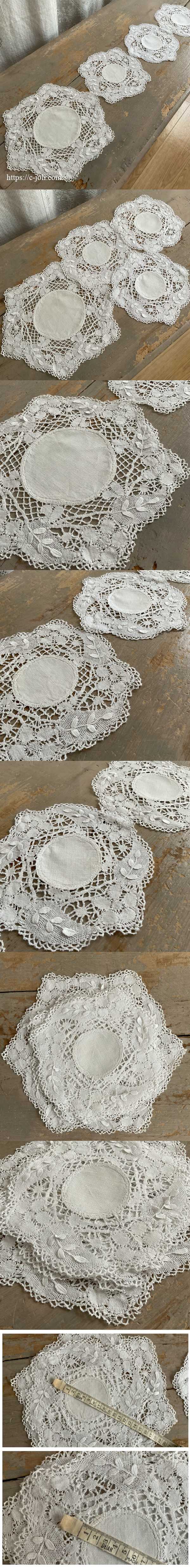 イギリスで作られたアンティークの同じデザインで揃えた4枚のレースドイリーセット。