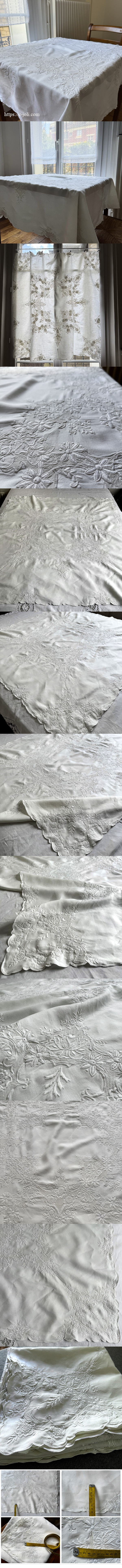 やわらかなリネンに、丁寧な手刺繍が広がるフランスのアンティークテーブルクロス。